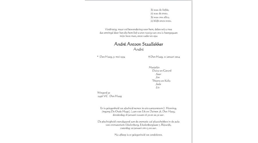 In verband met het overlijden van Laakkwartier-icoon Andre Staallekker en de uitvaartplechtigheid die zaterdag plaatsvindt gaan alle wedstrijden bij zowel de jeugd als de senioren niet door. De wedstrijden zullen op een later moment ingelast worden.